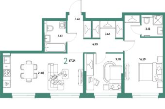 Продаётся 2-комнатная квартира в строящемся доме (Дом 2), срок сдачи: IV-кв. 2027, общей площадью 67.24 кв.м., на 12 этаже. Многоэтажные жилые дома с объектами инфраструктуры, расположенные по адресу: Московская область, г.о. Мытищи, г.Мытищи, мкр. 18Б, ул. Комарова.