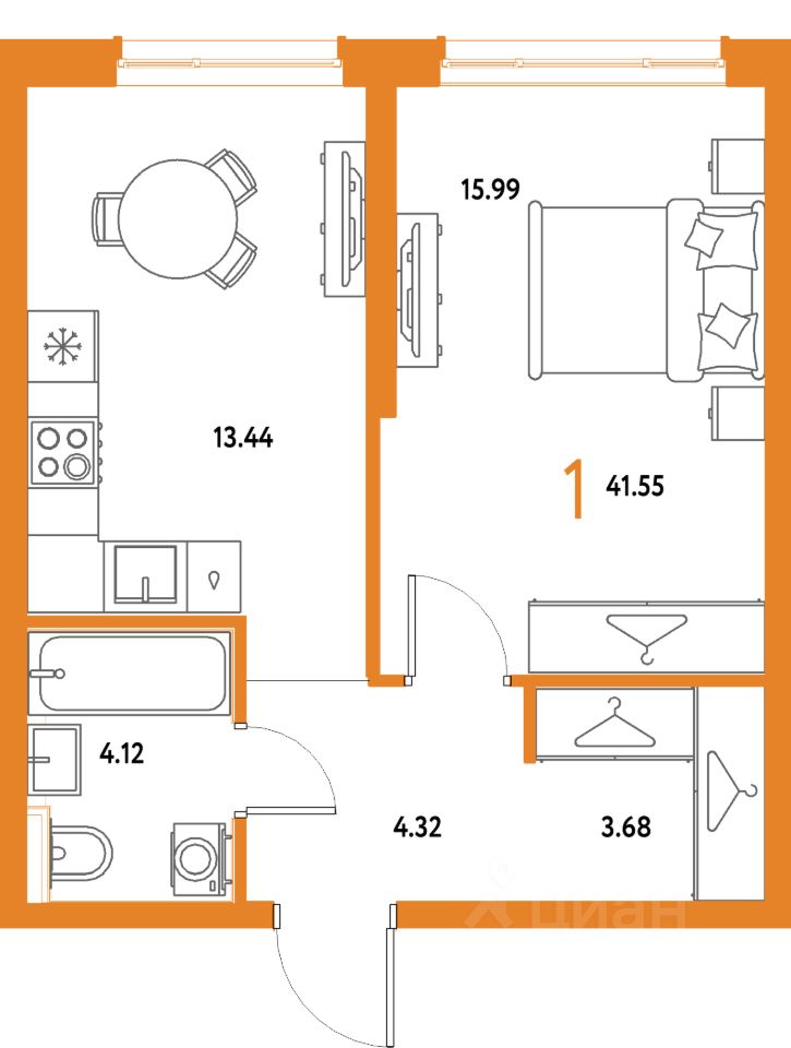 Продаётся 1-комнатная квартира в строящемся доме (Дом 2), срок сдачи: IV-кв. 2027, общей площадью 41.55 кв.м., на 14 этаже. Многоэтажные жилые дома с объектами инфраструктуры, расположенные по адресу: Московская область, г.о. Мытищи, г.Мытищи, мкр. 18Б, ул. Комарова.