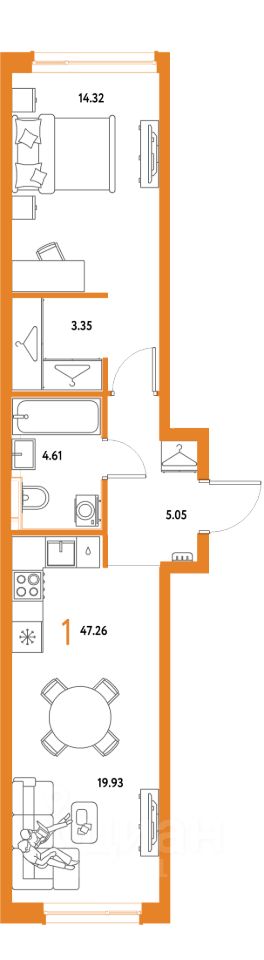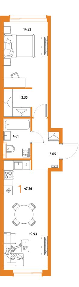 Продаётся 1-комнатная квартира в строящемся доме (Дом 2), срок сдачи: IV-кв. 2027, общей площадью 47.26 кв.м., на 17 этаже. Многоэтажные жилые дома с объектами инфраструктуры, расположенные по адресу: Московская область, г.о. Мытищи, г.Мытищи, мкр. 18Б, ул. Комарова.