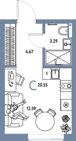 Продаётся студия в строящемся доме (Дом 1), срок сдачи: III-кв. 2026, общей площадью 20.55 кв.м., на 13 этаже. Многоэтажные жилые дома с объектами инфраструктуры, расположенные по адресу: Московская область, г.о. Мытищи, г.Мытищи, мкр. 18Б, ул. Комарова.