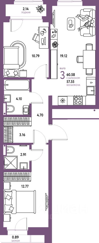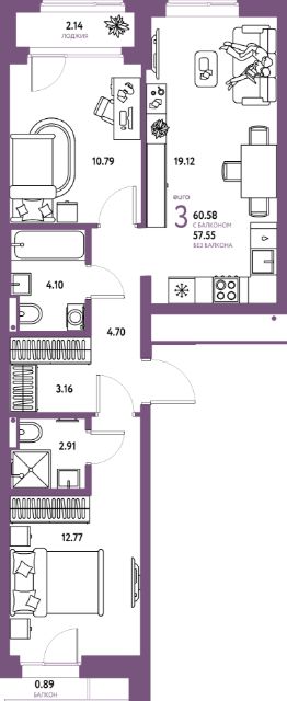 Продаётся 3-комнатная квартира в строящемся доме (Дом 1), срок сдачи: III-кв. 2026, общей площадью 60.58 кв.м., на 13 этаже. Многоэтажные жилые дома с объектами инфраструктуры, расположенные по адресу: Московская область, г.о. Мытищи, г.Мытищи, мкр. 18Б, ул. Комарова.