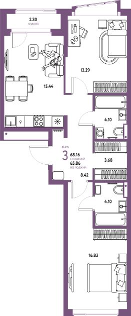 Продаётся 3-комнатная квартира в строящемся доме (Дом 1), срок сдачи: III-кв. 2026, общей площадью 68.16 кв.м., на 8 этаже. Многоэтажные жилые дома с объектами инфраструктуры, расположенные по адресу: Московская область, г.о. Мытищи, г.Мытищи, мкр. 18Б, ул. Комарова.
