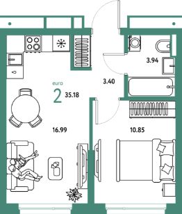 Продаётся 2-комнатная квартира в строящемся доме (Дом 1), срок сдачи: III-кв. 2026, общей площадью 35.18 кв.м., на 16 этаже. Многоэтажные жилые дома с объектами инфраструктуры, расположенные по адресу: Московская область, г.о. Мытищи, г.Мытищи, мкр. 18Б, ул. Комарова.