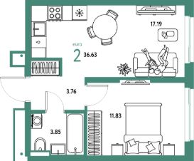 Продаётся 2-комнатная квартира в строящемся доме (Дом 1), срок сдачи: III-кв. 2026, общей площадью 36.63 кв.м., на 16 этаже. Многоэтажные жилые дома с объектами инфраструктуры, расположенные по адресу: Московская область, г.о. Мытищи, г.Мытищи, мкр. 18Б, ул. Комарова.