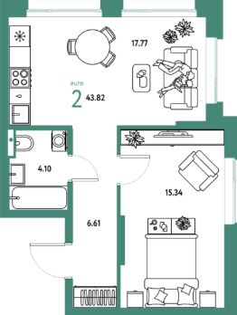 Продаётся 2-комнатная квартира в строящемся доме (Дом 1), срок сдачи: III-кв. 2026, общей площадью 43.82 кв.м., на 5 этаже. Многоэтажные жилые дома с объектами инфраструктуры, расположенные по адресу: Московская область, г.о. Мытищи, г.Мытищи, мкр. 18Б, ул. Комарова.