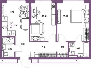 Продаётся 3-комнатная квартира в строящемся доме (Дом 1), срок сдачи: III-кв. 2026, общей площадью 59.1 кв.м., на 11 этаже. Многоэтажные жилые дома с объектами инфраструктуры, расположенные по адресу: Московская область, г.о. Мытищи, г.Мытищи, мкр. 18Б, ул. Комарова.