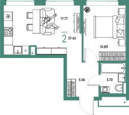 Продаётся 2-комнатная квартира в строящемся доме (Дом 1), срок сдачи: III-кв. 2026, общей площадью 37.42 кв.м., на 15 этаже. Многоэтажные жилые дома с объектами инфраструктуры, расположенные по адресу: Московская область, г.о. Мытищи, г.Мытищи, мкр. 18Б, ул. Комарова.