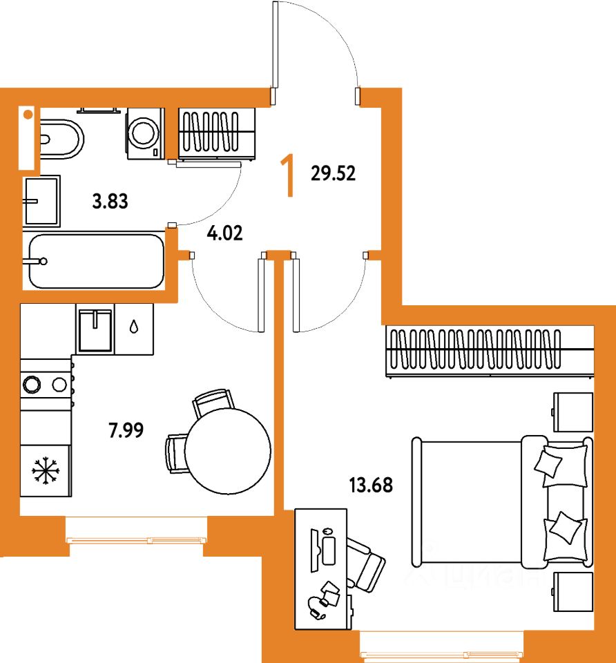Продаётся 1-комнатная квартира в строящемся доме (Дом 1), срок сдачи: III-кв. 2026, общей площадью 29.52 кв.м., на 19 этаже. Многоэтажные жилые дома с объектами инфраструктуры, расположенные по адресу: Московская область, г.о. Мытищи, г.Мытищи, мкр. 18Б, ул. Комарова.