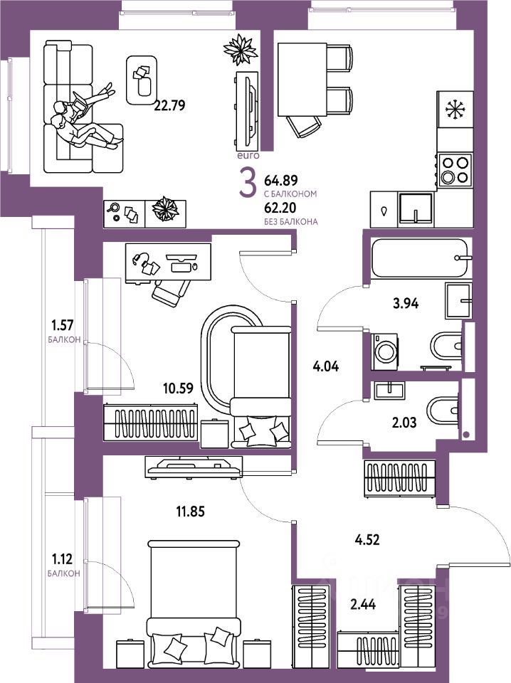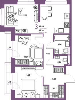 Продаётся 3-комнатная квартира в строящемся доме (Дом 1), срок сдачи: III-кв. 2026, общей площадью 64.89 кв.м., на 13 этаже. Многоэтажные жилые дома с объектами инфраструктуры, расположенные по адресу: Московская область, г.о. Мытищи, г.Мытищи, мкр. 18Б, ул. Комарова.