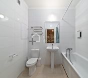 Современное здание с благоустроенной закрытой территорией и новыми детскими площадками. Безбарьерная входная группа. Доступ в подъезд и на этаж - по ключ-карте или через мобильное приложение. На этаже предусмотрены колясочная и велопарковка. Во дворе - парковочные места, также возможно приобрести или арендовать место на подземном уровне.