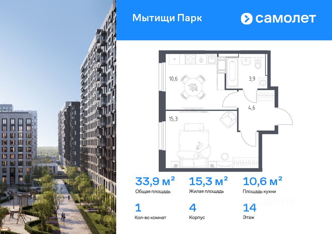 Строим кварталы для жизни с заботой о будущем. Предлагается 1-комнатная квартира комфорт-класса 33,9 кв.м в корпусе 4 на 14 этаже, в ЖК "Мытищи Парк"