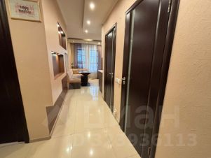 Комната разделена перегородкой на две функциональные зоны, есть большая гардеробная. Установлены тёплые полы, пластиковые окна, кондиционер. Санузел раздельный. Дополнительно установлен бойлер — на время отключения горячей воды проблем не возникает.