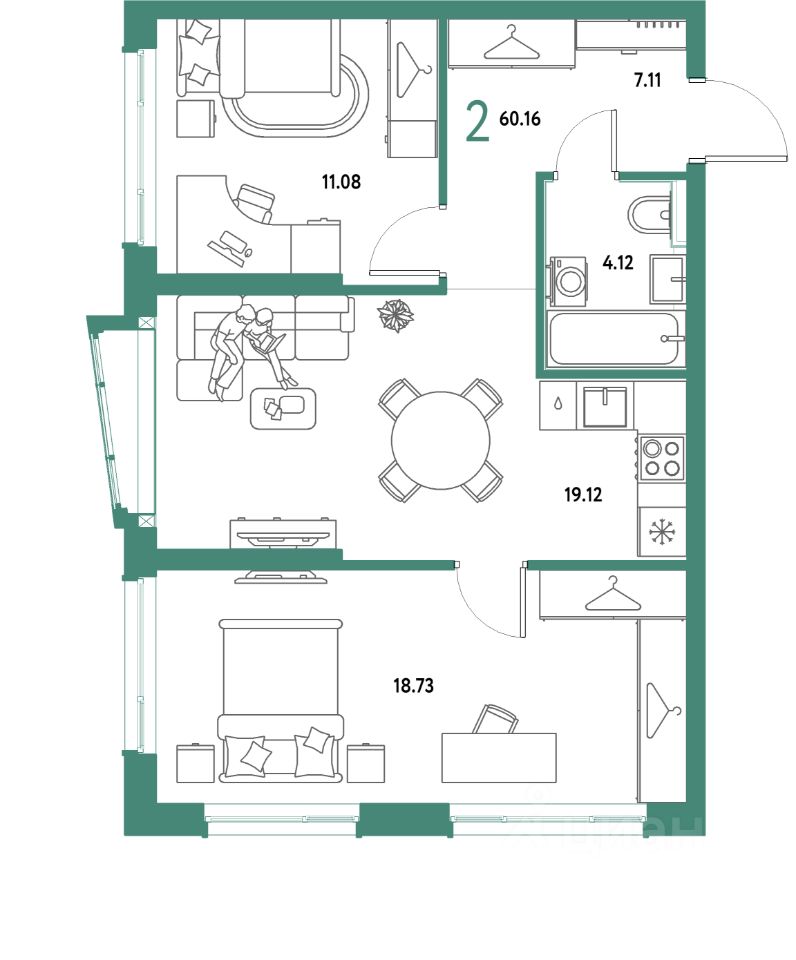 Продаётся 2-комнатная квартира в строящемся доме (Дом 2), срок сдачи: IV-кв. 2027, общей площадью 60.16 кв.м., на 4 этаже. Многоэтажные жилые дома с объектами инфраструктуры, расположенные по адресу: Московская область, г.о. Мытищи, г.Мытищи, мкр. 18Б, ул. Комарова.