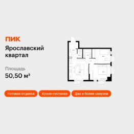 Продаётся 2-комн. квартира площадью 50,5 кв.м на 12 этаже 25 этажного дома (Корпус 1.4, Секция 1) проекта ПИК Ярославский квартал. Светлый просторный подъезд на уровне земли, функциональная планировка, большие окна, c отделкой.