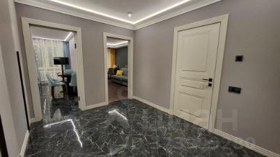 Потолки в санузле - влагостойкая аквапанель. Карнизы гипсовые, в комнатах двухуровненные, двухслойнные гипсокартоновые потолки. На полу инженерная доска.