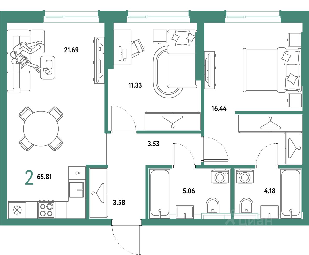 Продаётся 2-комнатная квартира в строящемся доме (Дом 2), срок сдачи: IV-кв. 2027, общей площадью 65.81 кв.м., на 5 этаже. Многоэтажные жилые дома с объектами инфраструктуры, расположенные по адресу: Московская область, г.о. Мытищи, г.Мытищи, мкр. 18Б, ул. Комарова.