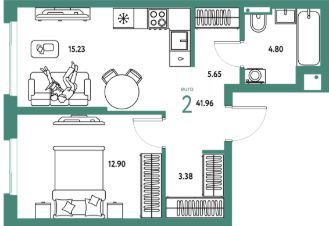 Продаётся 2-комнатная квартира в строящемся доме (Дом 1), срок сдачи: III-кв. 2026, общей площадью 41.96 кв.м., на 2 этаже. Многоэтажные жилые дома с объектами инфраструктуры, расположенные по адресу: Московская область, г.о. Мытищи, г.Мытищи, мкр. 18Б, ул. Комарова.