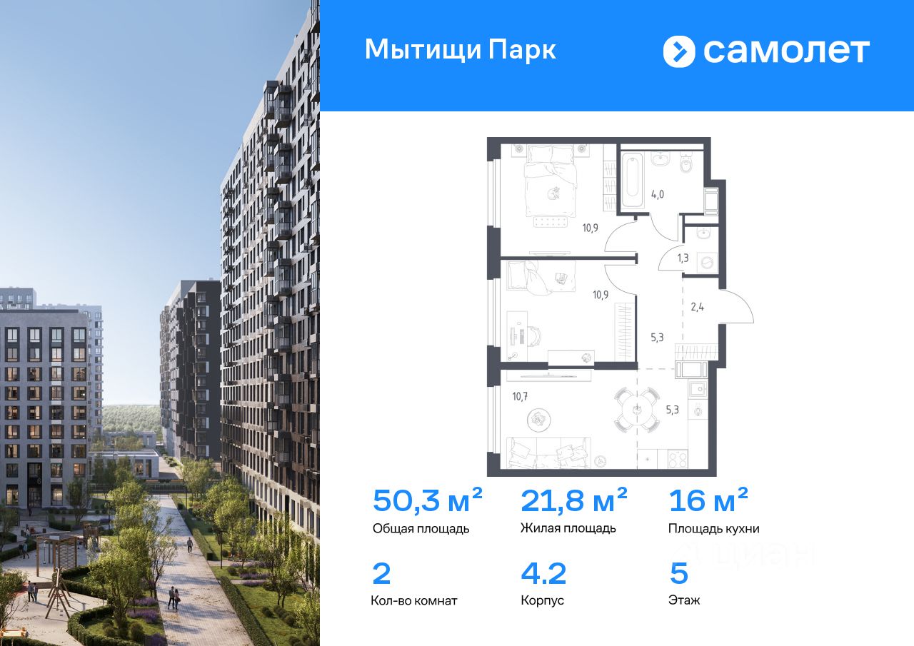 Строим кварталы для жизни с заботой о будущем. Предлагается 2-комнатная квартира комфорт-класса 50,3 кв.м в корпусе 4.2 на 5 этаже, в ЖК "Мытищи Парк"