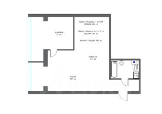 Квартира общей площадью 60 кв.м. с двумя утепленными лоджиями. Без учёта лоджии 49.5 кв.м. Формат Евродвушка.