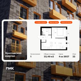 Продаётся 1-комн. квартира площадью 32,4 кв.м на 22 этаже 25 этажного дома (Корпус 2.4, Секция 1) проекта ПИК Ярославский квартал. Светлый просторный подъезд на уровне земли, функциональная планировка, большие окна, c отделкой.