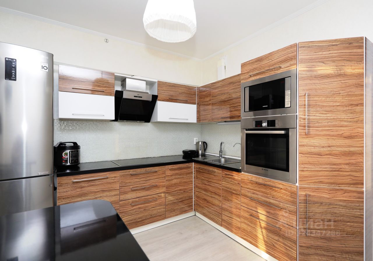 В квартире выполнен современный ремонт в светлых, мягких тонах, создающих атмосферу комфорта. Планировка позволяет использовать её как евродвушку: просторная кухня работает как кухня-гостиная, здесь установлен удобный раскладной диван, который превращается в полноценное двуспальное место — отлично подходит как для гостей, так и для спокойного уединённого отдыха.
