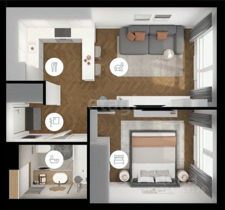 Вход в комнату ни через кухню-гостинную а отдельно из коридора,что является большим плюсом! Отделка "вайт бокс"(предчистовая).