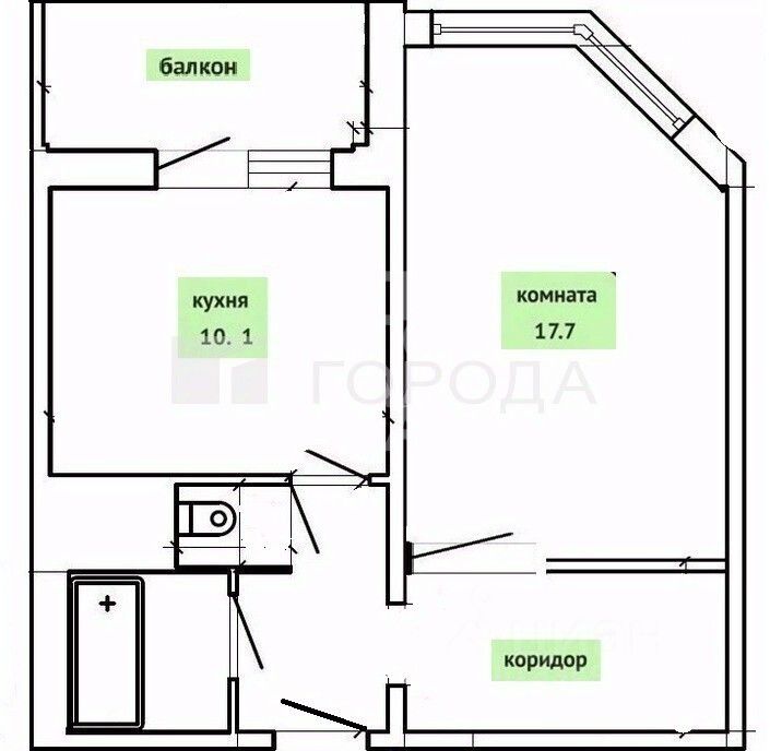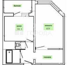 Квартира имеет удачную для однокомнатной планировку с большой кухней и нишей под большую гардеробную.