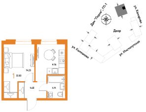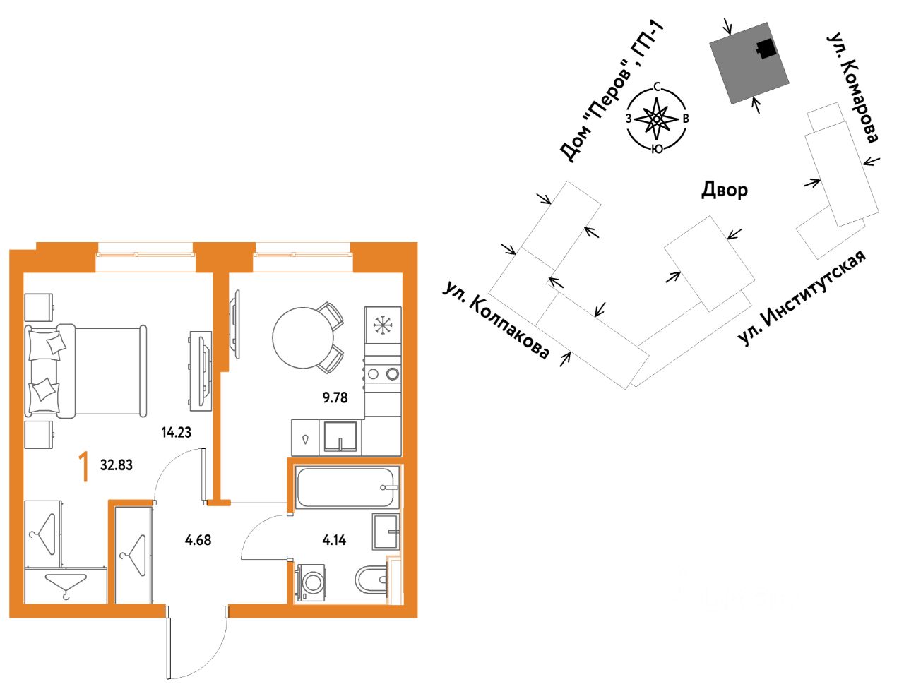 1комнатная квартира площадью 32,83кв. м. на 8 этаже от застройщика Страна Девелопмент.