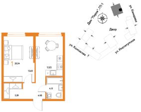 1комнатная квартира площадью 39,94кв. м. на 14 этаже от застройщика Страна Девелопмент.