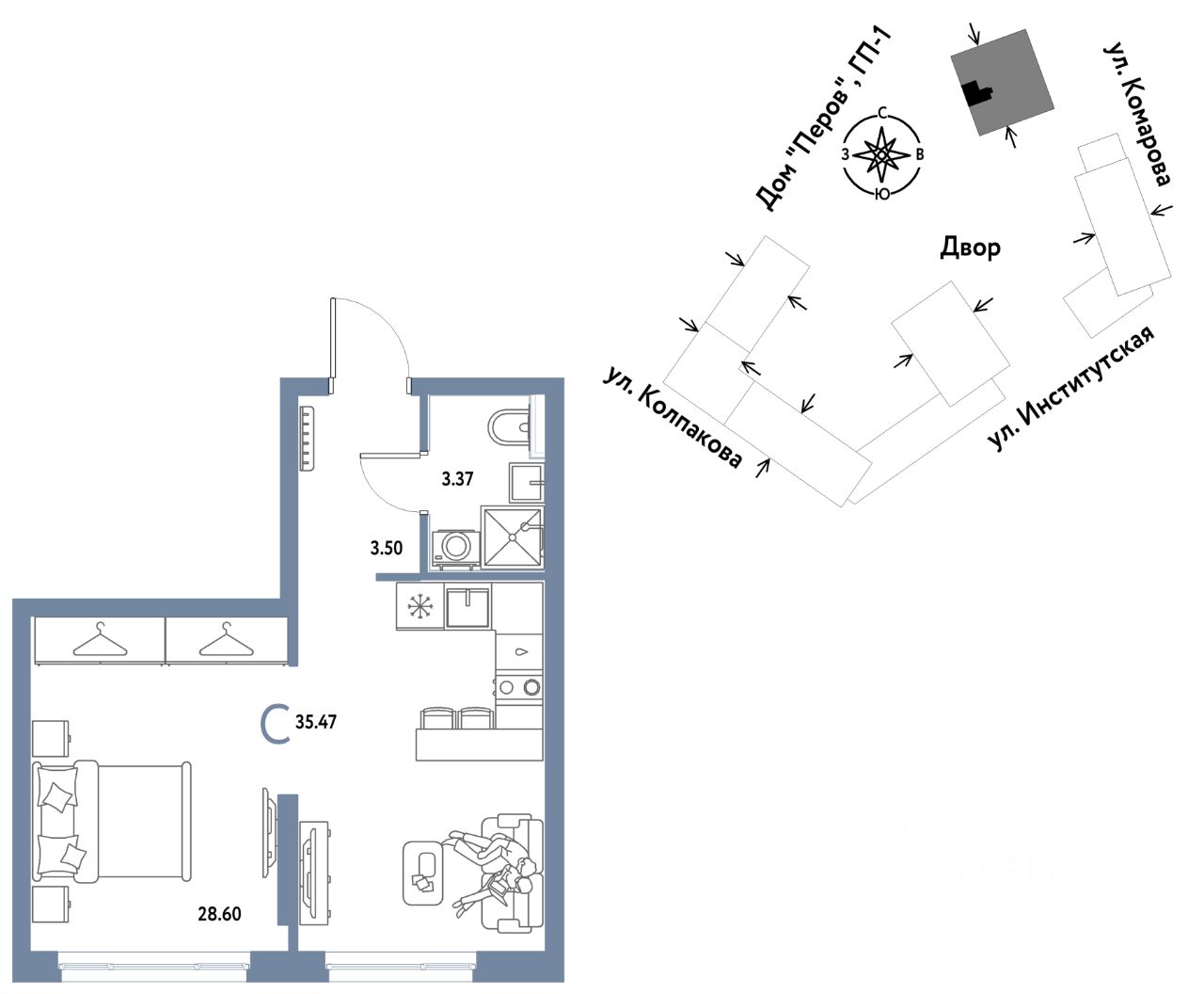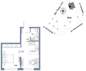 1комнатная квартира площадью 35,47кв. м. на 16 этаже от застройщика Страна Девелопмент.