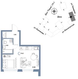 1комнатная квартира площадью 31,42кв. м. на 5 этаже от застройщика Страна Девелопмент.