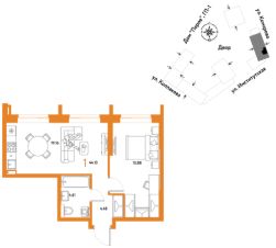 1комнатная квартира площадью 44,13кв. м. на 5 этаже от застройщика Страна Девелопмент.