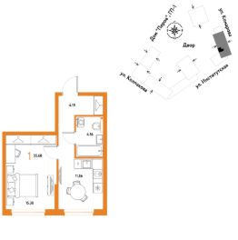 1комнатная квартира площадью 35,68кв. м. на 7 этаже от застройщика Страна Девелопмент.