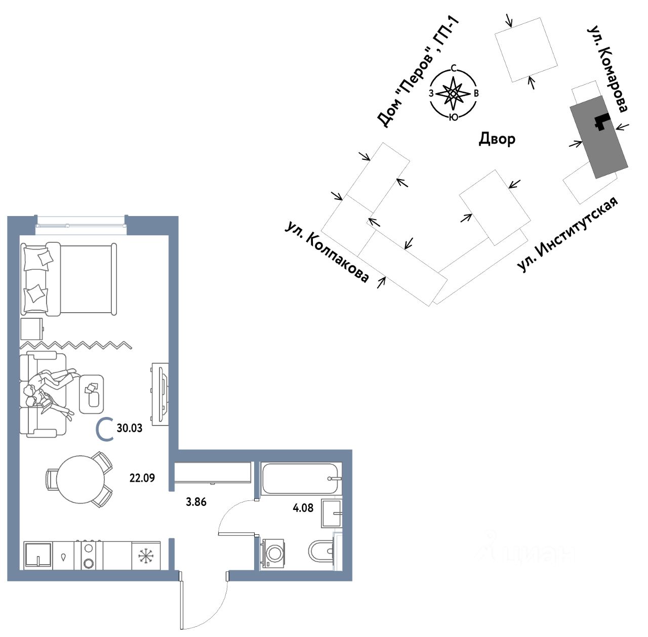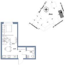 1комнатная квартира площадью 30,03кв. м. на 11 этаже от застройщика Страна Девелопмент.