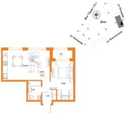 1комнатная квартира площадью 50,17кв. м. на 16 этаже от застройщика Страна Девелопмент.