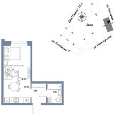 1комнатная квартира площадью 28,8кв. м. на 17 этаже от застройщика Страна Девелопмент.