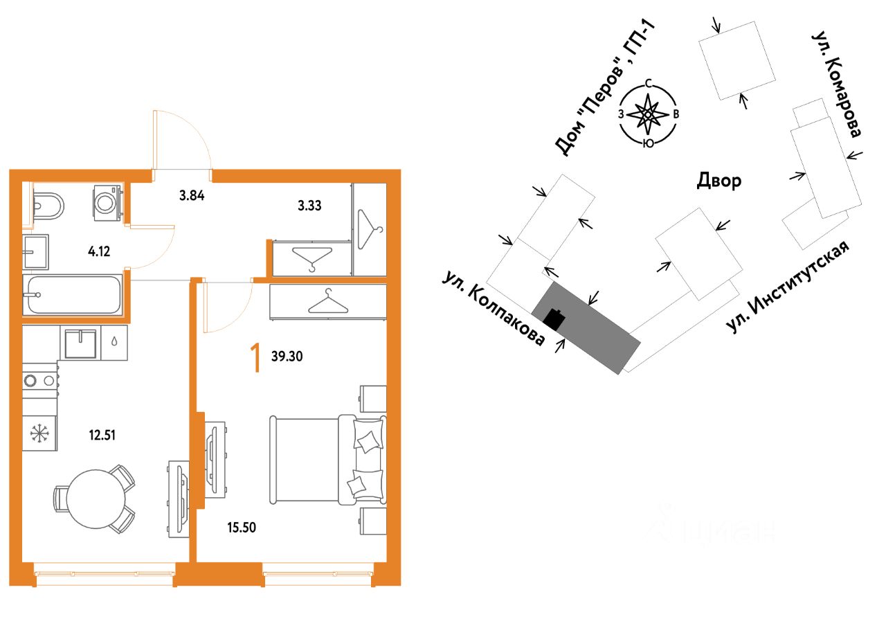 1комнатная квартира площадью 39,3кв. м. на 8 этаже от застройщика Страна Девелопмент.