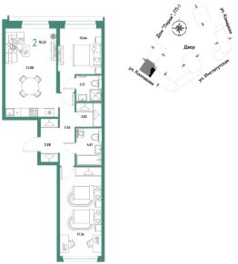 2комнатная квартира площадью 70,22кв. м. на 13 этаже от застройщика Страна Девелопмент.