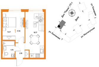 1комнатная квартира площадью 41,36кв. м. на 5 этаже от застройщика Страна Девелопмент.