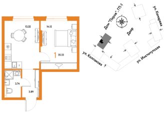 1комнатная квартира площадью 35,33кв. м. на 7 этаже от застройщика Страна Девелопмент.