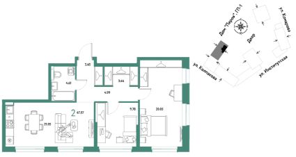 2комнатная квартира площадью 67,57кв. м. на 19 этаже от застройщика Страна Девелопмент.