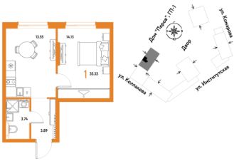 1комнатная квартира площадью 35,33кв. м. на 19 этаже от застройщика Страна Девелопмент.