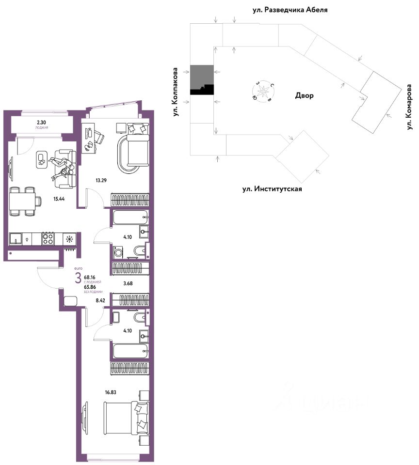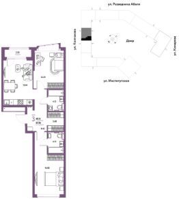 3комнатная квартира площадью 68,16 кв. м. на 8 этаже от застройщика Страна Девелопмент.