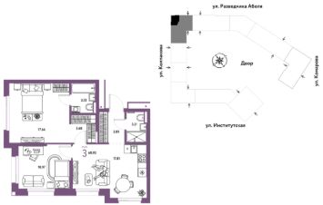 3комнатная квартира площадью 60,93 кв. м. на 2 этаже от застройщика Страна Девелопмент.