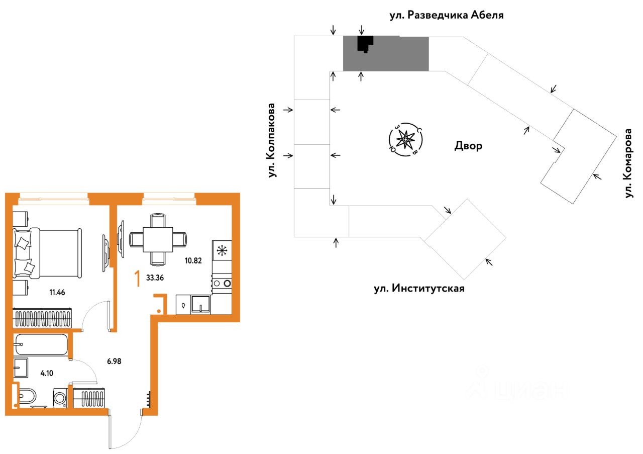1комнатная квартира площадью 33,36 кв. м. на 19 этаже от застройщика Страна Девелопмент.