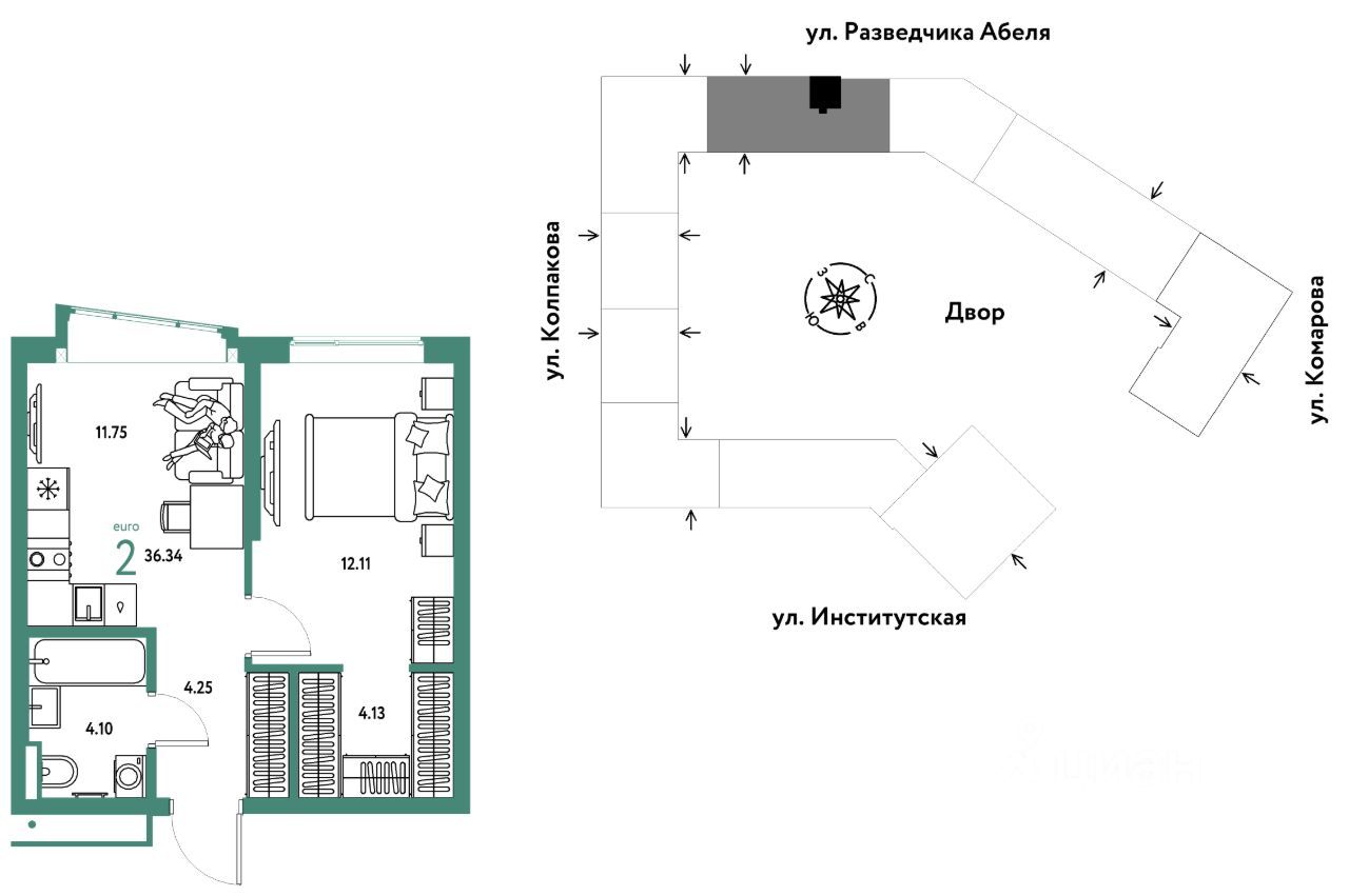 2комнатная квартира площадью 36,34 кв. м. на 19 этаже от застройщика Страна Девелопмент.