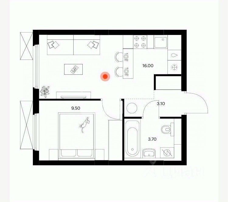 Продуманная планировка: Просторная кухня-гостиная 16 м², большие окна, функциональное пространство.