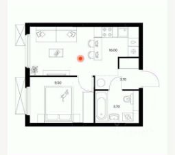 Площадь: 32,3 м² (кухня-гостиная 16 м²).