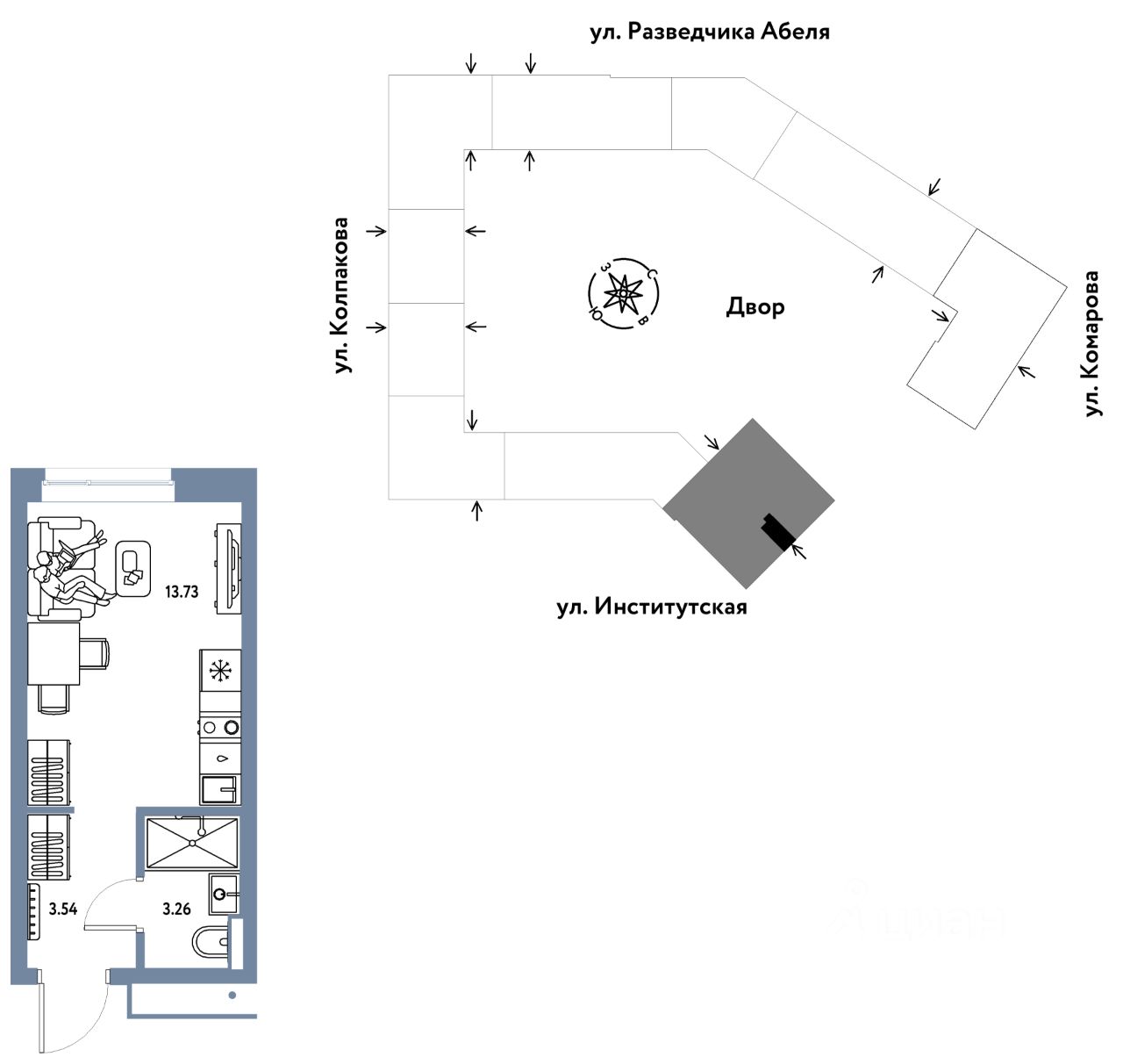 Студия площадью 20,53 кв. м. на 21 этаже от застройщика Страна Девелопмент.