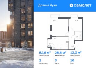 Строим кварталы для жизни с заботой о будущем. Предлагается 2-комнатная квартира комфорт-класса 52,83 кв.м в корпусе 3 на 16 этаже, в ЖК "Долина Яузы"